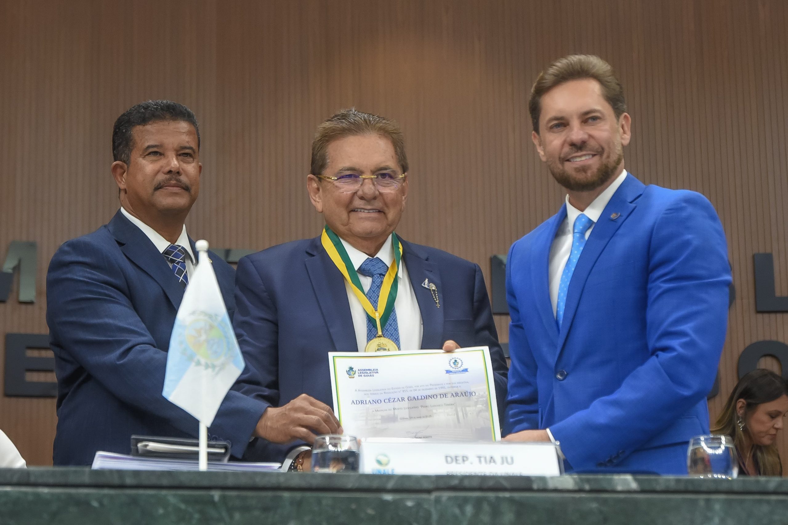 A honraria foi entregue durante a reunião do Colegiado de Presidentes das Assembleias Legislativas e da Câmara Legislativa do Distrito Federal, evento promovido pela União Nacional dos Legisladores e Legislativos Estaduais (Unale), realizado na sede da ALEGO, em Goiânia. A medalha reconhece autoridades e personalidades que têm se destacado por suas contribuições relevantes à sociedade e ao fortalecimento do poder legislativo no Brasil.