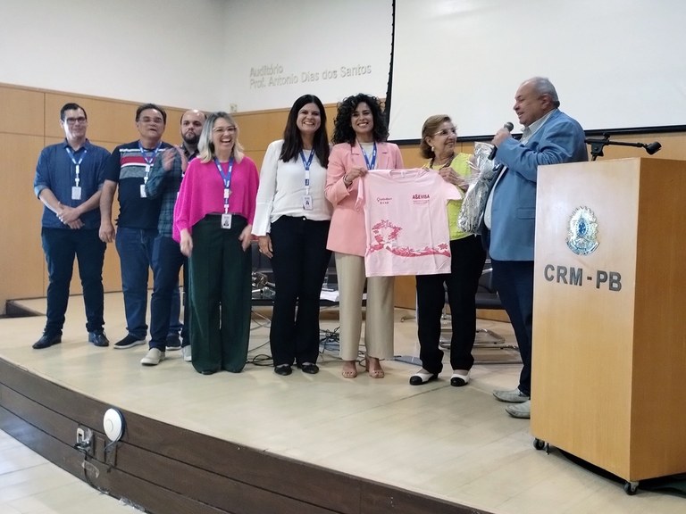 Organização e apoio – Parte das atividades da Campanha Outubro Rosa de prevenção ao câncer de mama e de defesa da saúde da mulher, e das comemorações pelo Dia Estadual de Vigilância Sanitária, celebrado em 25 de outubro, o evento realizado no Auditório do CRM/PB foi coordenado pela diretora-técnica de Ciência e Tecnologia Médica e Correlatos da Agevisa/PB, Vívian Lopes Miele, com o apoio do gerente técnico de Inspeção e Avaliação de Produtos, Equipamentos e Tecnologias Médicas, Emanuel Macedo, dos inspetores sanitários Wellington Leadebal, Adriana Mendes e Christiane Lucena, e do servidor da DTCTMC/Agevisa, Daniel Neves.