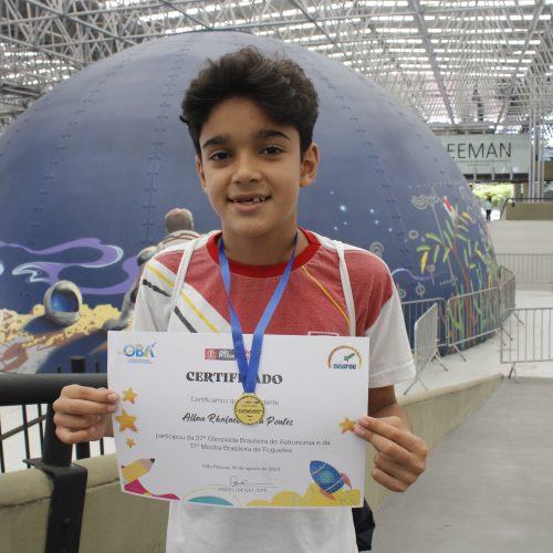 “É a primeira vez que eu participo dessa competição e a escola também. E foi até bom para quebrar um pouco a minha timidez. Quando a professora de Matemática me convidou eu aceitei o desafio. Eu fiquei muito feliz ao saber que meu foguete foi o que alcançou a maior distância de todos os competidores. Estou muito feliz e agora é aguardar a Jornada de Foguetes”, disse com alegria Allan Rhafael.