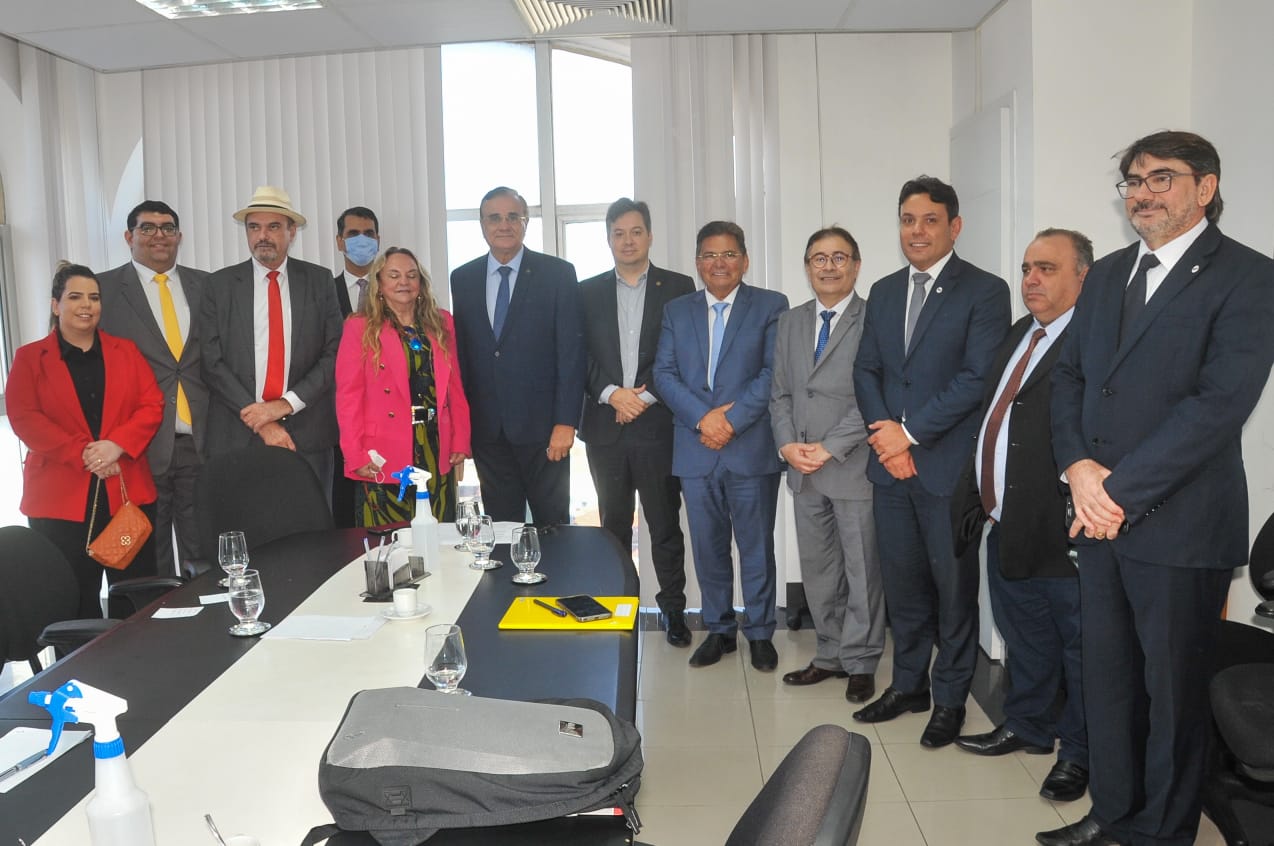 O presidente da Assembleia Legislativa da Paraíba (ALPB), Adriano Galdino; o presidente da Ordem dos Advogados do Brasil, Seccional Paraíba (OAB-PB), Harrison Targino; e os deputados Jeová Campos, Júnior Araújo e Dra. Paula; se reuniram, na tarde desta segunda-feira (30), com o presidente do Tribunal de Justiça da Paraíba (TJPB), desembargador Saulo Benevides, para solicitar a elevação da Comarca de Cajazeiras à 3ª Entrância do Poder Judiciário Paraibano.Também participaram da reunião o presidente da Subseção da OAB de Cajazeiras, Jone Pereira; o coordenador de Interiorização da OAB Nacional, João de Deus Quirino Filho; o conselheiro estadual da OAB-PB, Francisco Francinaldo Bezerra Lopes; e os advogados Anastácia Borges e Hugo Moreira.O presidente da ALPB, Adriano Galdino, destacou a importância do diálogo e a harmonia entre os Poderes. “Estou muito satisfeito com esse diálogo com o desembargador Saulo e o presidente da OAB-PB, Harison Targino, pois pudemos apresentar nossos pleitos e ouvir que o TJPB está aberto para o diálogo. O presidente garantiu que vai levar o pleito para o pleno e analisar junto aos demais desembargadores. O nosso objetivo é contribuir cada vez mais para que a justiça se aproxime da população do Sertão”, destacou.Já o presidente da OAB-PB, Harison Targino, ressaltou que que a elevação à 3ª Entrância aperfeiçoa a prestação jurisdicional, uma vez que levará mais magistrados para a região e, consequentemente, mais agilidade para o Judiciário. “Esta ação só trará benefícios à população”, afirmou. Harrison também observou que elevação é “um ato importante, já que a Comarca de Cajazeiras é a única do Estado que ainda não foi elevada à 3ª Entrância”.