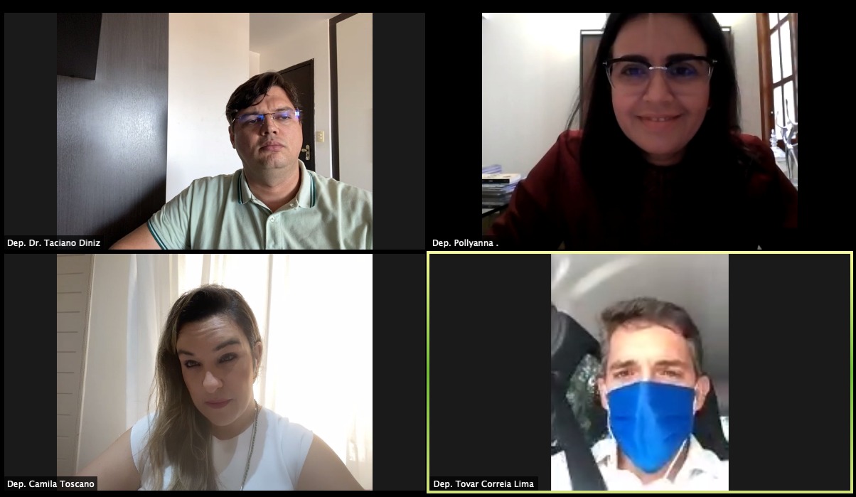 A reunião da CCJ aconteceu através de videoconferência e, além da presidente Pollyana Dutra, contou com a participação dos deputados Tovar Correia Lima, Camila Toscano e Taciano Diniz.