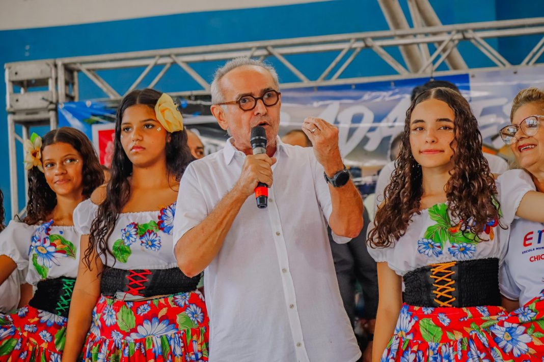 Os alunos da Escola Municipal Ativa Integral Chico Xavier, no bairro do Bessa, fizeram festa para receber o prefeito Cícero Lucena, que nesta quarta-feira (20), autorizou o início das obras que irão reconstruir a unidade escolar. Durante solenidade, o gestor garantiu que a Prefeitura vai seguir avançando para reconstrução de toda a rede de ensino, colocando-a no padrão tecnológico, com espaços inovadores, ambientes climatizados e infraestrutura moderna.