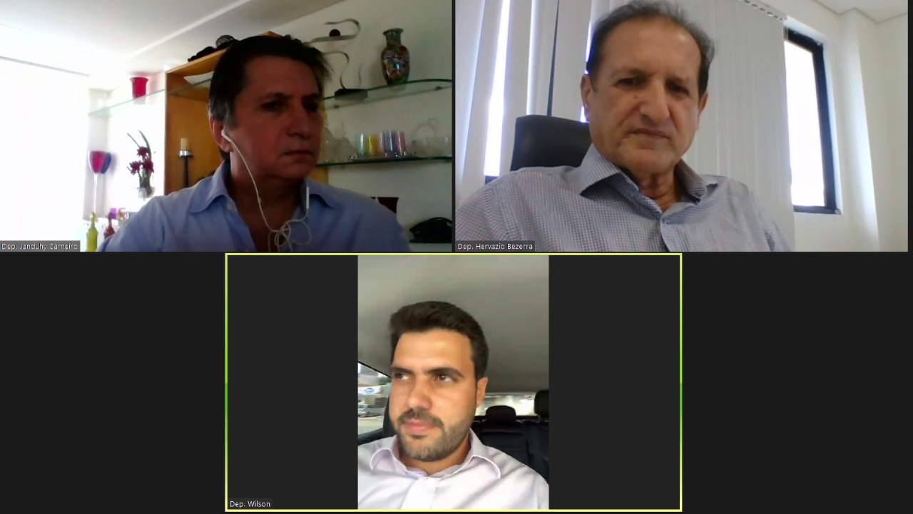 A reunião foi realizada através de videoconferência e contou com a participação dos deputados Hervázio Bezerra, Janduhy Carneiro e Wilson Filho.