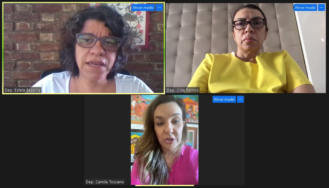 Estavam presentes na reunião as deputadas Cida Ramos, Camila Toscano e a presidente da Comissão, Estela Bezerra.