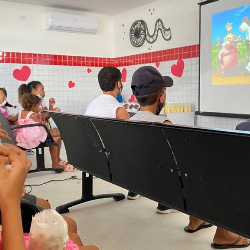 O filme exibido foi “O Segredo dos Animais”, que tem como tema a luta para escolha de um líder e a preocupação em esconder dos humanos as habilidades. A atividade ocorreu na Escola Municipal Deputada Lúcia Braga.