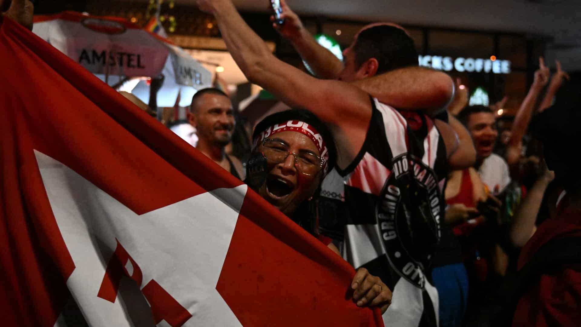 A cada nova atualização há gritos de ‘olê, olê, olá, Lula’ e ‘vamos virar’. Ás 18h45, quando anunciaram a virada, fogos foram lançados em comemoração.