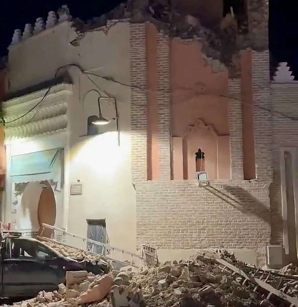 Imagens compartilhadas em redes sociais mostraram pessoas correndo e gritando perto da Mesquita Koutoubia, do século XII, em Marrakesh, um dos marcos mais famosos da cidade. A mídia marroquina informou que a mesquita sofreu danos.