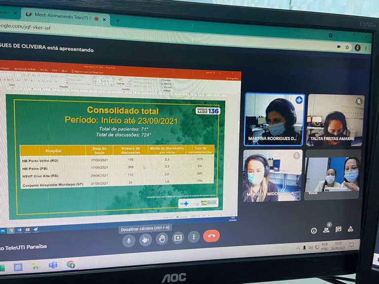“A melhor avaliação entre os hospitais que participam do projeto coube à nossa unidade e estamos muito felizes com esse resultado”, disse a diretora técnica do Complexo, Jaquelline Andrade, logo após ser comunicada dos resultados auditados pela equipe médica da Universidade de São Paulo (USP). Além do Complexo de Patos, o Conjunto Hospitalar do Mandaqui (SP), o HB de Porto Velho (RO) e o HSVP Cruz Alta (RS) também foram avaliados pelo projeto de Tele-UTI. O projeto começou a ser desenvolvido em Patos, em maio deste ano.