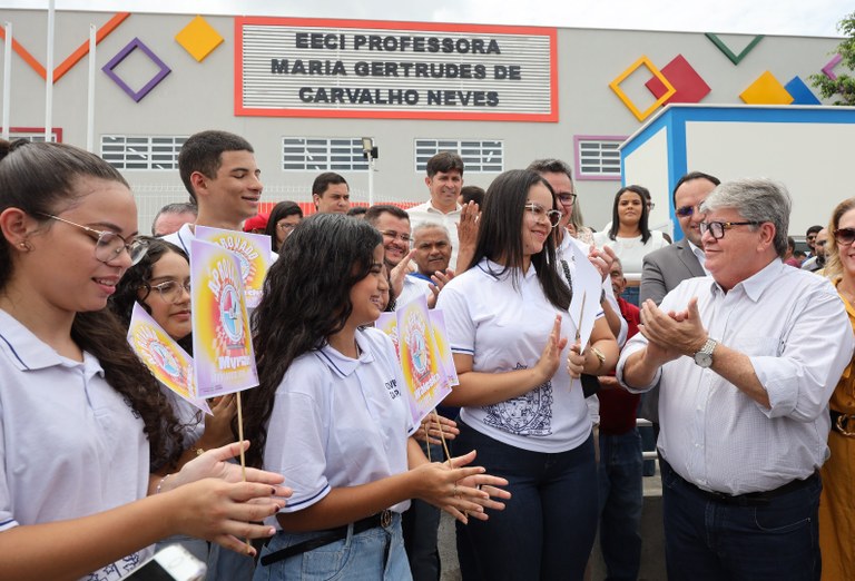 O governador João Azevêdo inaugurou, nesta segunda-feira (19), em Caiçara, no Brejo paraibano, o novo prédio do Complexo Educacional da Escola Cidadã Integral (ECI) Professora Maria Gertrudes de Carvalho Neves, que recebeu investimentos de R$ 5,3 milhões. No município, o gestor também entregou a nova agência local da Companhia de Água e Esgotos da Paraíba (Cagepa) e obras de reforma de reservatórios. Ele ainda autorizou a ordem de licitação para a ampliação da Estação de Tratamento de Água (ETA) de Lagoa do Matias e a construção da nova adutora de Logradouro, que compreendem recursos de aproximadamente R$ 13,2 milhões.
