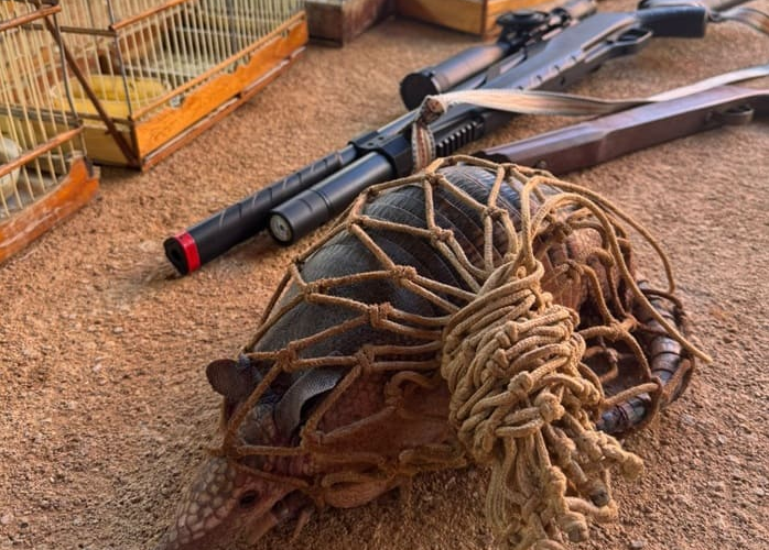 Na segunda etapa da operação, realizada na zona rural de Bernardino Batista, os agentes encontraram mais 13 aves e um tatu-peba em um único imóvel. Além dos animais, foram apreendidos equipamentos utilizados para caça ilegal, incluindo uma carabina de pressão calibre 5.5 e uma espingarda de calibre não identificado.