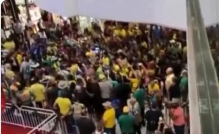 No início da noite deste sábado (3), manifestantes contrários à eleição de Luiz Inácio Lula da Silva (PT) fizeram um protesto dentro do ParkShopping em Brasília (DF).