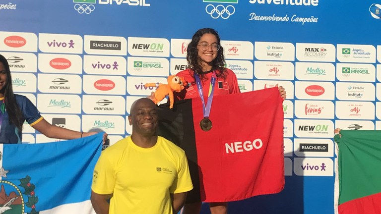 A paraibana Giovana Campos brilhou, nesta terça-feira (12), e conquistou uma medalha de ouro e uma de bronze na natação dos Jogos da Juventude, que estão ocorrendo em Ribeirão Preto (SP). A primeira colocação foi na prova dos 200 metros nado borboleta, enquanto nos 400 metros medley, ela subiu na terceira posição no pódio. A atleta é patrocinada pelo Governo da Paraíba, por meio do programa Bolsa Esporte.