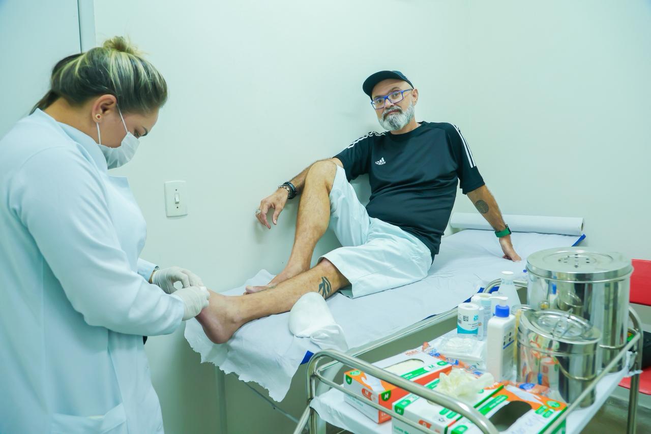Além dos curativos diários, Alisson passou a ter acompanhamento com endocrinologista, fisioterapeuta e psicólogo pela rede pública. Agora, ele inicia uma nova fase, com a reabilitação, que inclui o fortalecimento muscular e o preparo para o uso de prótese. “Foi um impacto grande, porque eu sempre fui muito ativo e trabalhava o tempo todo. Quando perdi parte do pé, tudo mudou. Mas aqui eu encontrei força, acolhimento e aprendizado. Hoje, entendo que a saúde tem que vir em primeiro lugar”, afirmou o paciente.