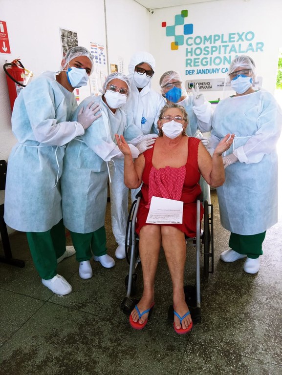 A aposentada Maria do Céu Gomes, de 69 anos, moradora da cidade de Catingueira, tem agora mais uma data natalícia no seu histórico de vida: 05.05. Isto porque foi nesta data que ela, cardiopata, teve alta do Complexo Hospitalar Regional Deputado Janduhy Carneiro de Patos (CHRDJC), após passar quase 15 dias internada, a maior parte deles em ventilação mecânica, se recuperando de complicações causadas pelo Covid-19. Outra paciente do grupo de risco, com diabetes e hipertensão, a senhora Maria do Carmo, 68 anos, também conseguiu driblar os prognósticos e se recuperar de um quadro grave da doença e voltar para a casa curada na sexta-feira (1) passada. Ela foi a primeira paciente vítima da pandemia do coronavírus a receber alta