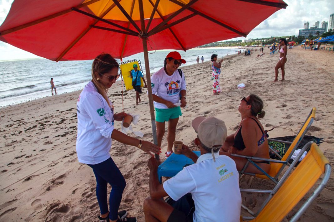 “Para incentivar nossa ação educativa, fazemos a distribuição de sacolinhas biodegradáveis para armazenamento dos resíduos produzidos e de copos de papel, de modo a desestimular o consumo de plástico. Ao saírem da praia, as pessoas podem descartar os resíduos nas papeleiras ou coletores na calçadinha”, explica Ricardo Veloso.