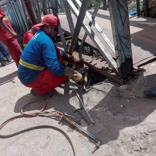 Na oportunidade foi reforçada a fixação da passarela com trilhos junto à base e, além disso, foram feitas algumas ações de recuperação na ponte.