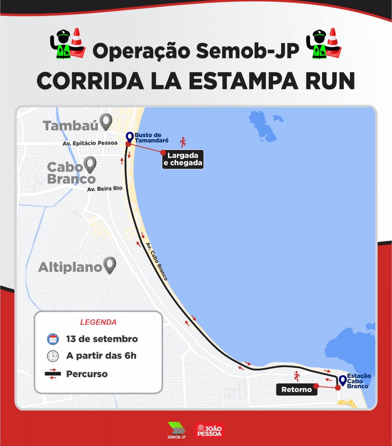 Para garantir a fluidez do tráfego de veículos e a segurança dos atletas na Corrida La Estampa Run, neste sábado (13), e nos circuitos Banco do Brasil – Etapa João Pessoa e Music Run 2025 – Etapa Rock, neste domingo (14), a Superintendência Executiva de Mobilidade Urbana de João Pessoa (Semob-JP) vai disponibilizar 45 agentes e equipamentos de sinalização viária em toda a extensão das corridas.