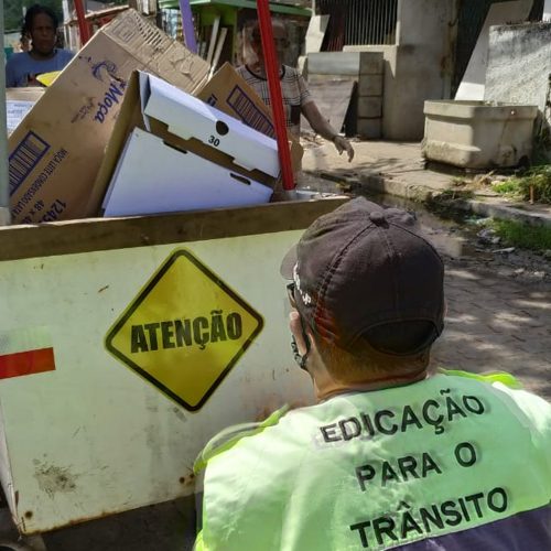 A equipe de educadores adesivou 30 carroças e orientou os catadores sobre o deslocamento seguro no trânsito. “Nossa intenção é tornar mais segura a condução desses profissionais que transitam pelas ruas para que fiquem mais visíveis para os condutores de veículos automotores”, declarou o superintendente da mobilidade, George Morais.