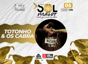 A Fundação Cultural de João Pessoa (Funjope) abre a programação cultural do mês de setembro neste domingo (5), a partir das 16h, com uma apresentação de Totonho & Os Cabra, na Casa da Pólvora. Os artistas vão tornar o fim de tarde mais animado, espalhando seus acordes contagiantes pelo Centro Histórico.