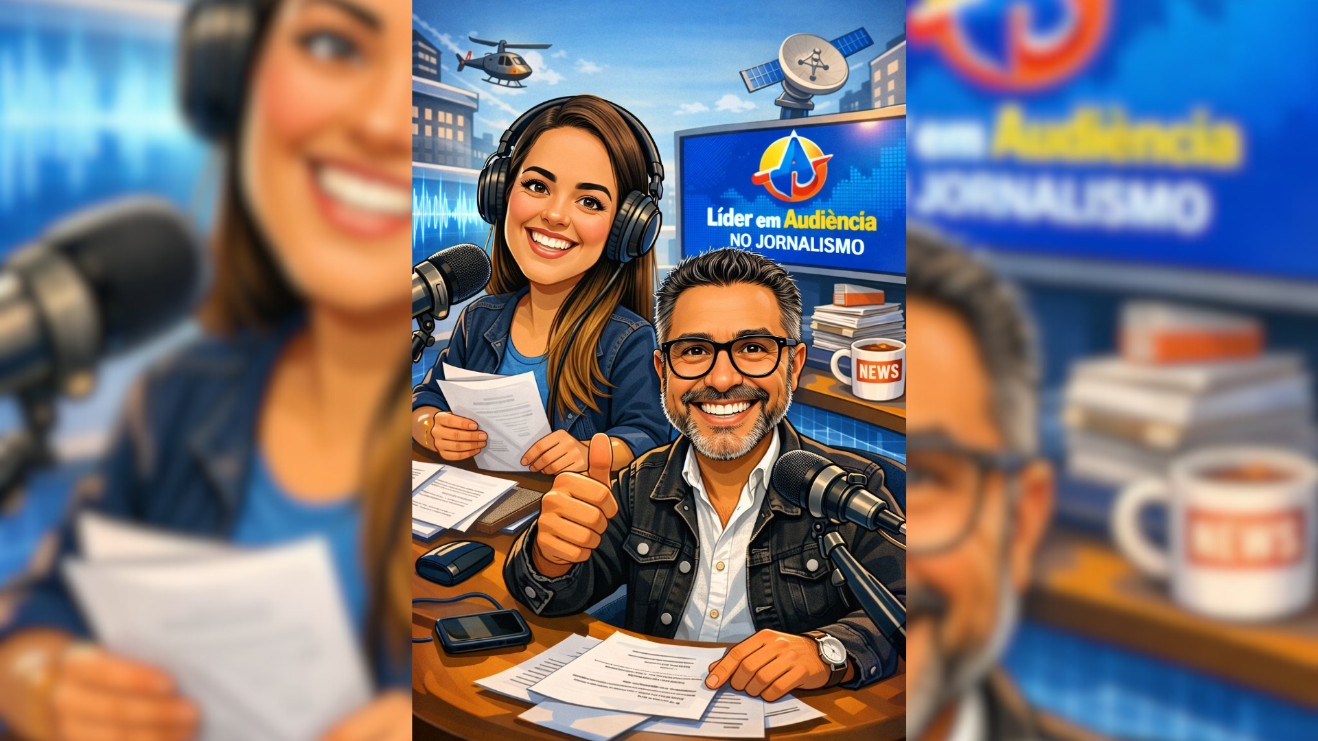 As redes sociais registraram nos últimos dias uma nova tendência: usuários estão transformando fotos pessoais em caricaturas geradas por inteligência artificial, usando o ChatGPT e outras plataformas de criação de imagens. Os apresentadores do Sistema Arapuan de Comunicação entreram na Trend (foto acima). Lado esquerdo, reportér e apresentadora Sabrina Barbosa e lado direito o apresentador Samuka Duarte. Saiba como fazer abaixo.